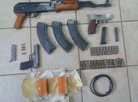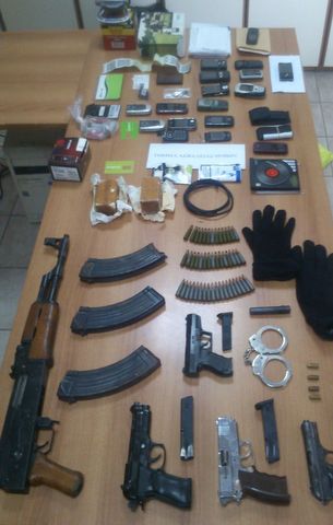 Μετά από έρευνες που διενεργήθηκαν βρέθηκαν και κατασχέθηκαν στα σπίτι του 36χρονου και του 25χρονου στο Μελισσοχώρι Θηβών και στα Βάγια Βοιωτίας καλάσνικωφ, πιστόλια, σφαίρες, εκρηκτικές ύλες, ναρκωτικά και πλήθος, κινητών τηλεφώνων.