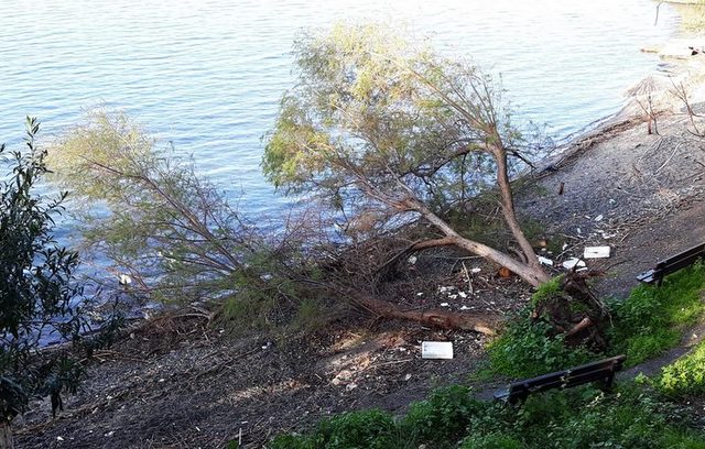 Ήδη, από την κακοκαιρία του Ιανουαρίου είχαν σπάσει δύο μεγάλα δένδρα, που χάριζαν απλόχερα την σκιά τους στους κολυμβητές τα καλοκαίρια. Πρόσφατα έσπασαν άλλα τρία αλμυρίκια για να ολοκληρωθεί η καταστροφή.