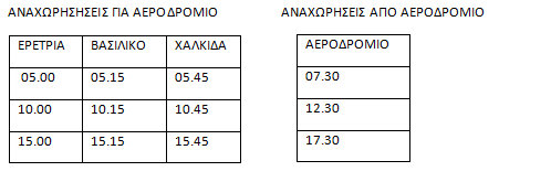 Οι τιμές των εισιτηρίων παραμένουν ίδιες : 17 ευρώ ανά διαδρομή από και προς Χαλκίδα, 20 ευρώ ανά διαδρομή από και προς Ερέτρια-Βασιλικό.»