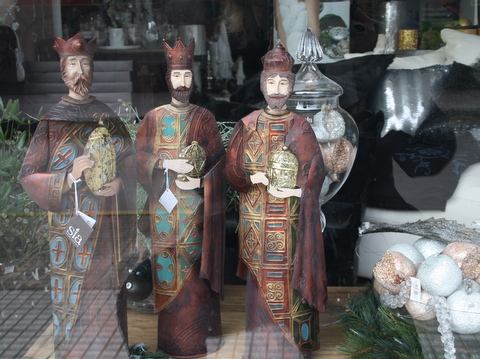 Τρεις μάγοι - μοντέλα κοσμούσαν τη βιτρίνα στο κατάστημα SELEKOU της Ντίνας και του Γιώργου Σελέκου.