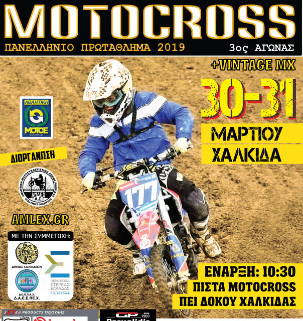 Ο 3ος αγώνας Μοtocross του Πανελληνίου Πρωταθλήματος θα γίνει στην Χαλκίδα, το Σαββατοκύριακο 30 και 31 Μαρτίου, με ώρα έναρξης στις 10:30 το πρωί, στην πίστα Μηχανοκίνητου Αθλητισμού της Χαλκίδας, στο Πέι Δοκού.