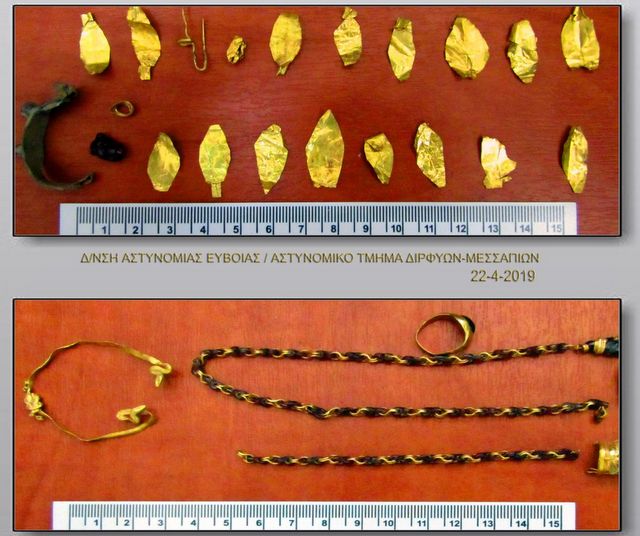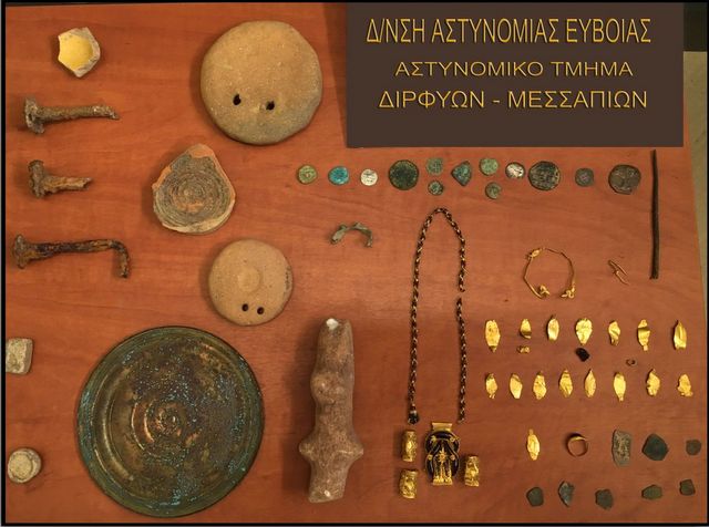 Το πρωί της Μεγάλης Δευτέρας 22 Απριλίου, συνελήφθη ένας 59χρονος Έλληνας, από αστυνομικούς της Ομάδας Ασφάλειας του Αστυνομικού Τμήματος Διρφύων – Μεσσαπίων Ευβοίας, κατηγορούμενος για παράβαση της νομοθεσίας περί προστασίας αρχαιοτήτων και εν γένει της πολιτιστικής κληρονομιάς.