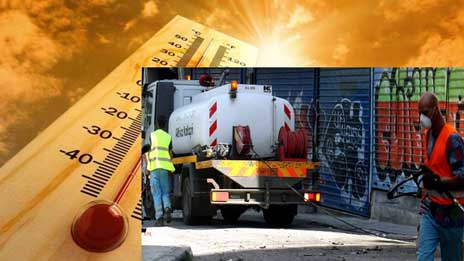 Όταν η θερμοκρασία αγγίζει τους 38 βαθμούς, ιδιαίτερα μεταξύ 11-4 μ.μ.. η εργασία πρέπει να σταματά και σε κλειστούς χώρους. Αποκομιδή απορριμμάτων ΔΕΝ γίνεται την ώρα αυτή.