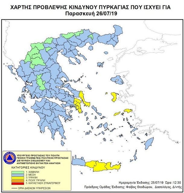 Στη Νότιο Εύβοια θα υπάρχει υψηλός κίνδυνος πυρκαγιάς την Παρασκευή 26 Ιουλίου, σύμφωνα με τον Χάρτης Πρόβλεψης Κινδύνου Πυρκαγιάς, που εκδίδει η Γενική Γραμματεία Πολιτικής Προστασίας.