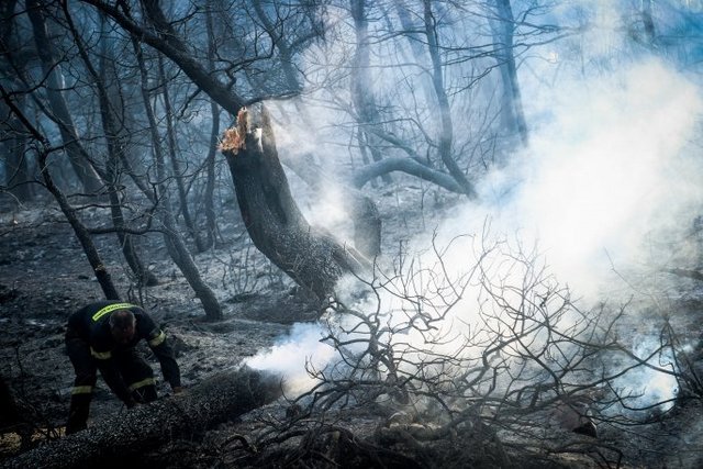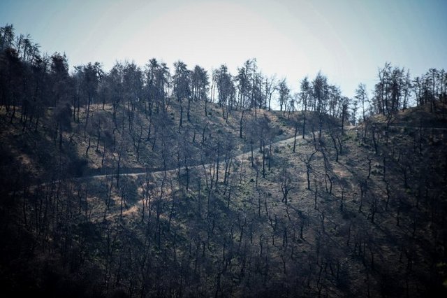 Το πρώτο φως της ημέρας έδειξε το μέγεθος της καταστροφής από τη φωτιά στην Κεντρική Εύβοια, καθώς -μεταξύ άλλων- κάηκε μεγάλο μέρος του πευκοδάσους κοντά στα χωριά Μακρυμάλλη, Κοντοδεσπότι και Σταυρό.