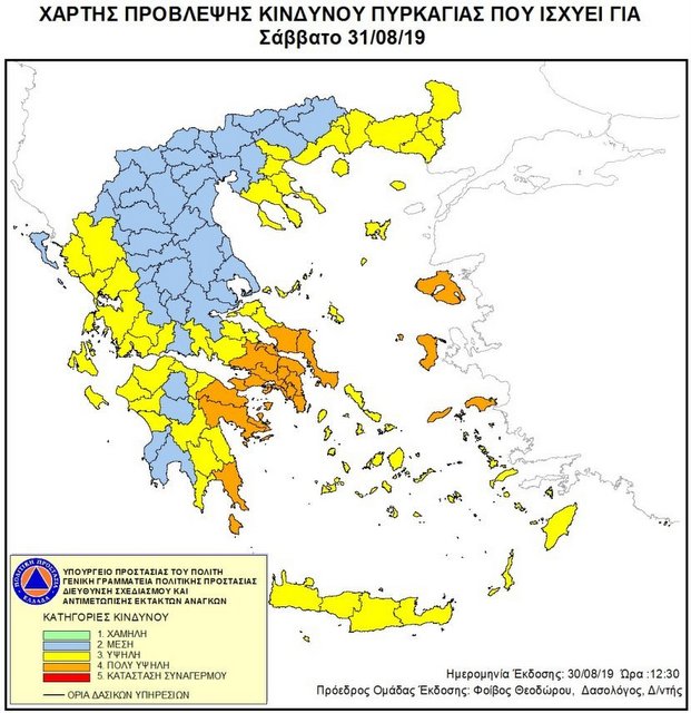 Σε πορτοκαλί συναγερμό θα βρίσκεται η Εύβοια την τελευταία μέρα του Αυγούστου, αφού είναι πολύ υψηλός ο κίνδυνος πυρκαγιάς, σύμφωνα με τον Χάρτη Πρόβλεψης Κινδύνου Πυρκαγιάς που ισχύει για το Σάββατο 31 Αυγούστου.
