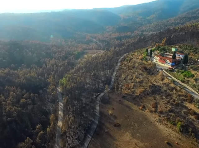 Μέσα από την κάμερα drone, που πέταξε πάνω από τις καμένες εκτάσεις.