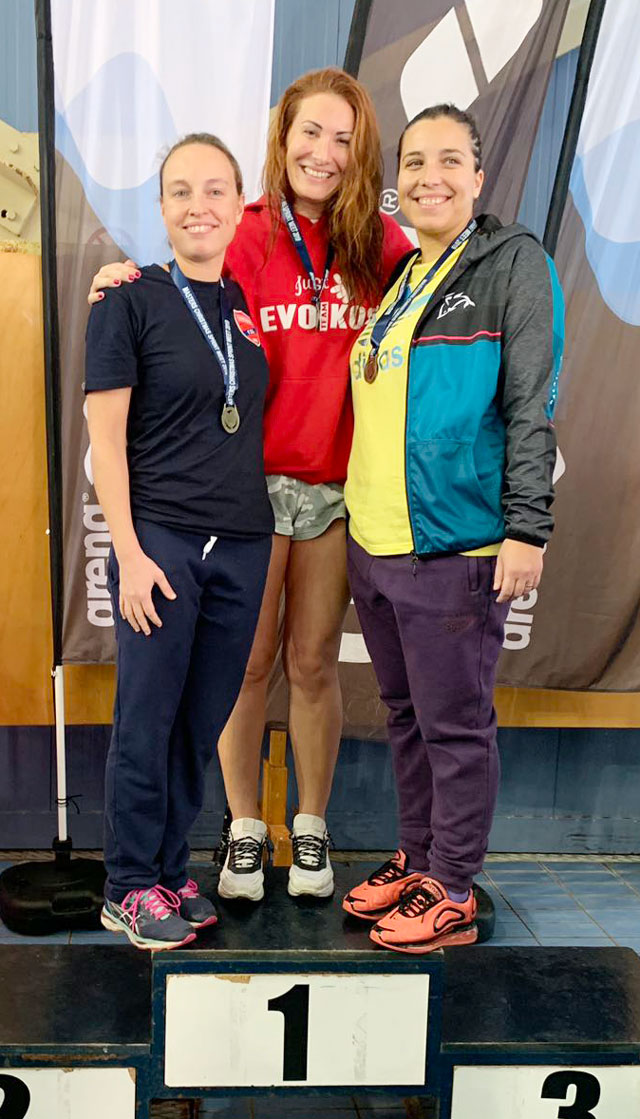 - Η Γωγώ Σιαράπη (φωτό δεξιά) κέρδισε ένα χρυσό στα 50 μέτρα πρόσθιο και τέσσερα ασημένια μετάλλια στα 50 μέτρα πεταλούδα, στα 50 μέτρα ελεύθερο, στα 100 μέτρα ΜΑ και στα 100 πρόσθιο στην κατηγορία Γυναικών 35-39.