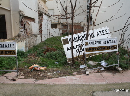 Η εταιρία του Σταύρου Καμαριώτη, όμως, έχει αφήσει πεταμένες τις πινακίδες στην οδό Αποστολίδου, όπου δεν βλέπουμε να εκτελείται και κάποιο έργο. Μαζέψτε τες, δεν είναι δύσκολο...