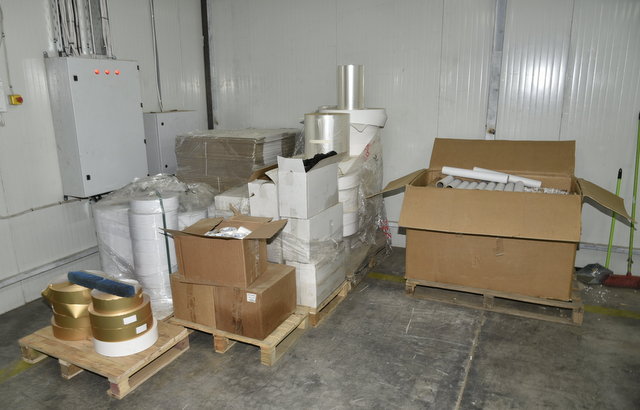 - πλήθος υλικών, όπως ρολά διαφανούς υλικού για συσκευοποίηση παλετών, χάρτινα κουτιά μεταφοράς, χαρτιά περιτύλιξης φέροντα επωνυμίες γνωστών καπνοβιομηχανιών, που χρησιμοποιούνταν ως πρώτες ύλες για την τυποποίηση τσιγάρων,