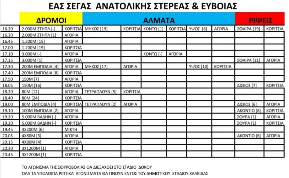Η έναρξη θα δοθεί στις 4 και 20 το μεσημέρι, στο Στάδιο Χαλκίδας και οι αγώνες θα ολοκληρωθούν στις 9.