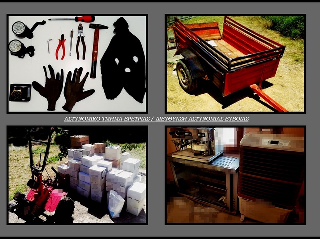 Από αστυνομικούς του Αστυνομικού Τμήματος Ερέτριας Ευβοίας, εξιχνιάστηκαν τρεις κλοπές από αποθήκες και εξοχική κατοικία, οι οποίες διαπράχθηκαν το χρονικό διάστημα από 14 Φεβρουαρίου έως και 1 Ιουλίου, σε περιοχές της Ερέτριας.