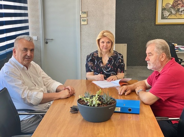Τη σχετική σύμβαση υπέγραψε η δήμαρχος Χαλκίδας και πρόεδρος της ΔΕΥΑΧ Ελενα Βάκα με τον εκπρόσωπο της αναδόχου εταιρίας Σταύρο Καμαριώτη (στη φωτό μαζί με τον διευθυντή της δημοτικής επιχείρησης Μπάμπη Μανιάτη).
