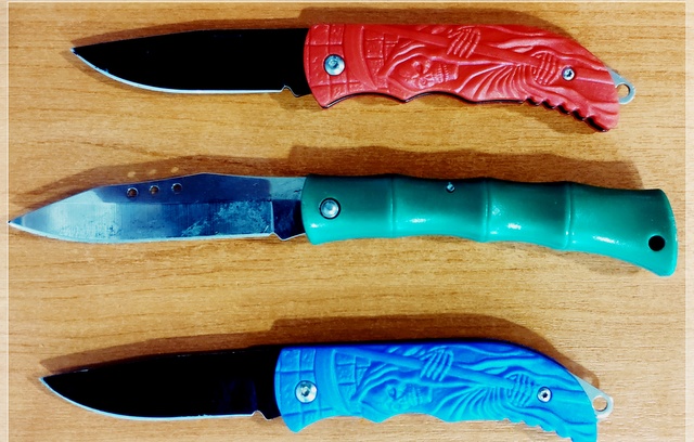 Κατά τη σύλληψή τους, βρέθηκαν στη κατοχή τους και κατασχέθηκαν τρεις αναδιπλούμενοι σουγιάδες. Σε βάρος τους σχηματίσθηκε δικογραφία για φθορά ξένης ιδιοκτησίας, κατά συναυτουργία, και παράβαση της νομοθεσίας περί όπλων.