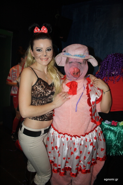 Την Δήμητρα Δήμου που έχει ντυθεί γουρουνάκι δεν μπορούμε να την αναγνωρίσουμε. Μας αρκεί, όμως, η Σοφία Αθανασίου, το σέξι λαγουδάκι που είναι δίπλα της. Λαγουδάκι με τιγρέ μπλουζάκι κάνει μάλιστα έναν περίεργο, αλλά ...προκλητικά όμορφο συνδυασμό!