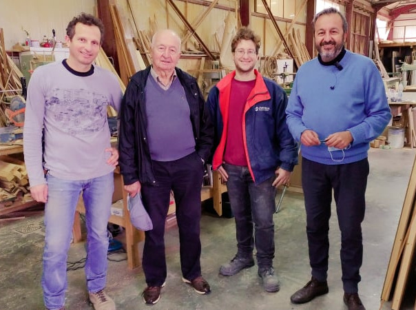 Ο Γιώργος Μπασινάς ανάμεσα στο γιο του Σταύρο, τον ανιψιό του Αντώνη και τον πρωτότοκο, Κώστα στη βιοτεχνία στον Βατώντα.