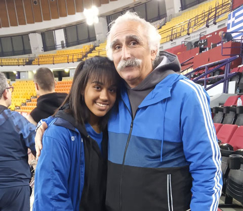 Στη σφαίρα γυναικών η Παναγιώτα Οσάγι (στη φωτό κάτω με τον προπονητή της Πέτρο Γεωργίου) είχε καλύτερη βολή, την προτελευταία της, στα 10.62 και κατετάγη 8η.