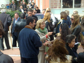 Στη φωτογραφία η Ουρανία Παπανδρέου συνομιλεί με γονείς κατά την επίσκεψή της στο σχολείο.