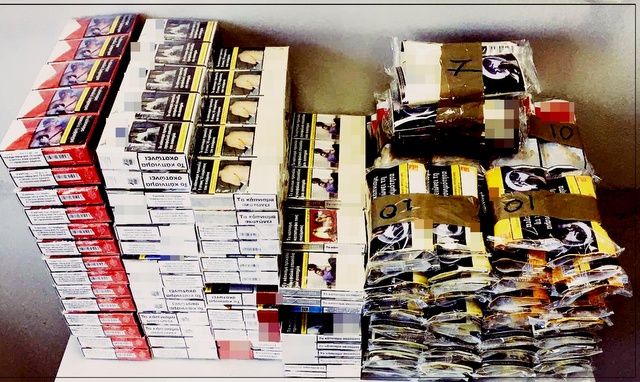 Κατασχέθηκαν 271 πακέτα τσιγάρων και 4,3 κιλά καπνού.