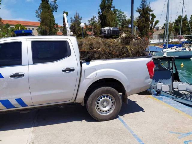 Εντοπίστηκαν βυθισμένα στη θάλασσα 41 κλουβιά, για παγίδευση ψαριών.