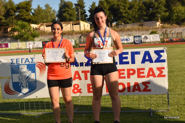 Στη σφαιροβολία κοριτσιών την καλύτερη βολή είχε η Μαρία Σαλή (δεξιά) του Ατλα Κύμης στα 12.01 μ. Δεύτερη η Βασιλική Κοτοπούλου (αριστερά) του Εσπερου Λαμίας με 10.90 και τρίτη η Ουρανία Τερνιώτη της Αναγέννησης Λαμίας με 7.88 μ.