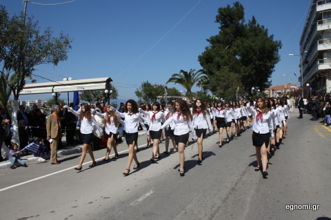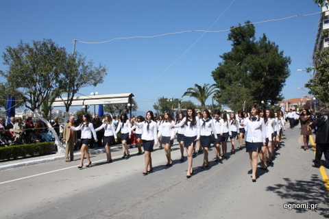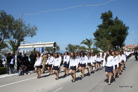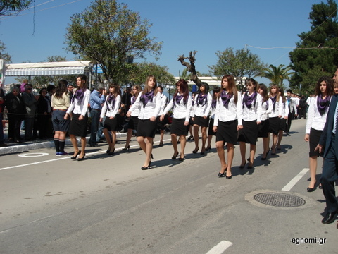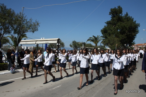Από τις πιο κοντές φούστες της παρέλασης ήταν εκείνες των μαθητριών του 2ου Λυκείου (φωτό κάτω).