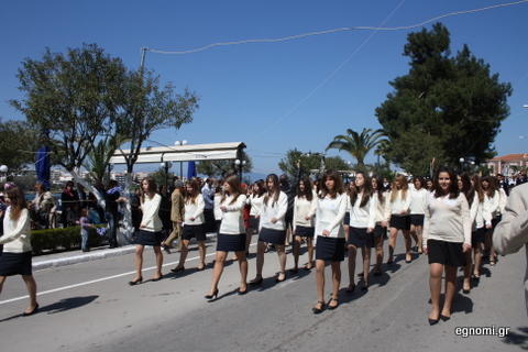 Καλύτερα από τους συμμαθητές τους παρέλασαν οι μαθήτριες του Γυμνασίου Κανήθου (φωτό κάτω).