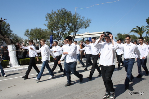 Τρελά ...τυπάκια ήταν οι μαθητές του Λυκείου Κανήθου. Οι περισσότεροι είχαν το πουκάμισο έξω από το παντελόνι και μερικοί φορούσαν γυαλιά ηλίου! Με διαδορά οι πιο trendy της παρέλασης!