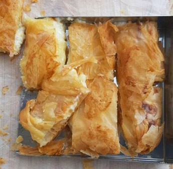 Ψήνετε σε καλά προθερμασμένο φούρνο στους 200 βαθμούς C στον αέρα, στη μεσαία σχάρα, για 10λεπτά για να πάρει όγκο και να χωρίσουν όλες οι στρώσεις σφολιάτας. Ετσι θα γίνει τραγανή από πάνω.