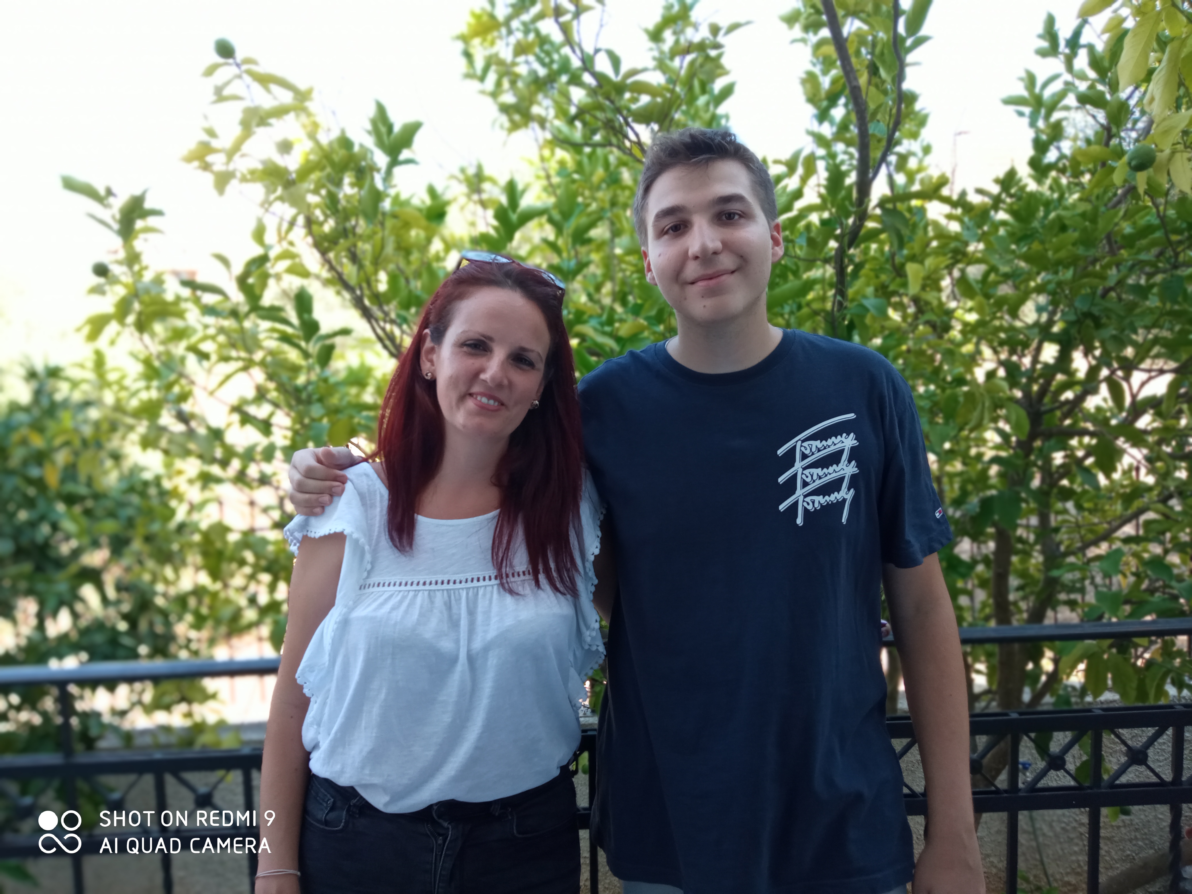 Ο Κωνσταντίνος Τρίκκας χαμογελάει για την επιτυχία του δίπλα στη φιλόλογο και νονά του, Άννα Φραντζή.