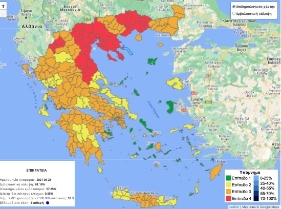 Δείτε παρακάτω πώς διαμορφώθηκε ο επιδημιολογικός χάρτης της χώρας μετά την επικαιροποίηση, με την Εύβοια να βρίσκεται στο καλύτερο επίπεδο, σε σχέση με τους υπόλοιπους νομούς της Στερεάς Ελλάδας.