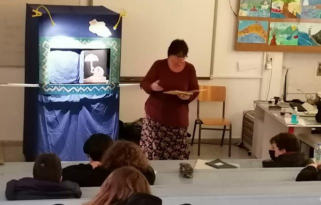 Η Δάφνη Βλουμίδη παρουσίασε με κουκλοθέατρο τα βιβλία της στο 2ο Γυμνάσιο Χαλκίδας