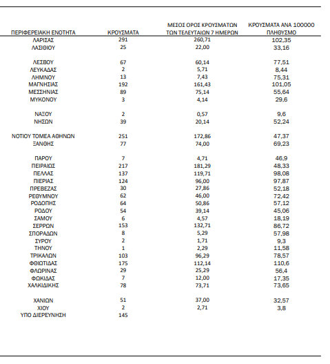Δείτε αναλυτικά την κατανομή των κρουσμάτων, ανά νομό της Στερεάς (σε παρένθεση τα χθεσινά νούμερα):
