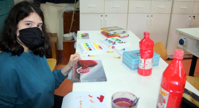 Η Θεοδώρα Γκριτζά, μαθήτρια της Γ' Λυκείου, βάζει τα δυνατά της για ένα άρτιο αισθητικά αποτέλεσμα.
