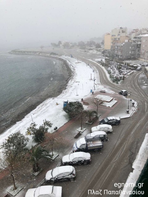 Στα λευκά ντύθηκε και η πλαζ Παπαθανασίου στη Χαλκίδα μετά την επίσκεψη της κακοκαιρίας "Ελπίδα" τα ξημερώματα της Δευτέρας.