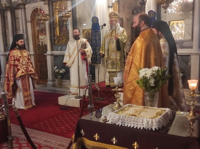 O επίσημος εορτασμός, σύμφωνα με την παράδοση, έγινε στην ιστορική παλαιοχριστιανική βασιλική της Πολιούχου Χαλκίδος Αγίας Παρασκευής με την Θεία Λειτουργία, στην οποία προεξήρχε ο Μητροπολίτης Χαλκίδος, Ιστιαίας και Βορείων Σποράδων κ. Χρυσόστομος.