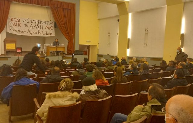 Πραγματοποιήθηκε το Σάββατο 19 Μαρτίου στο κινηματοθέατρο "Ελύμνιον", στη Λίμνη, η εκδήλωση-συζήτηση για το χωροταξικό που οργάνωσε η Συνέλευση Αγώνα Βόρειας Εύβοιας (ΣΑΒΕ).