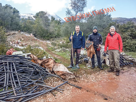 Ακόμη δεν είχε λιώσει το χιόνι στη Ριτσώνα όταν ο Σπύρος Γεωργιάδης και άλλα μέλη του συλλόγου μάζεψαν επικίνδυνα σκουπίδια.