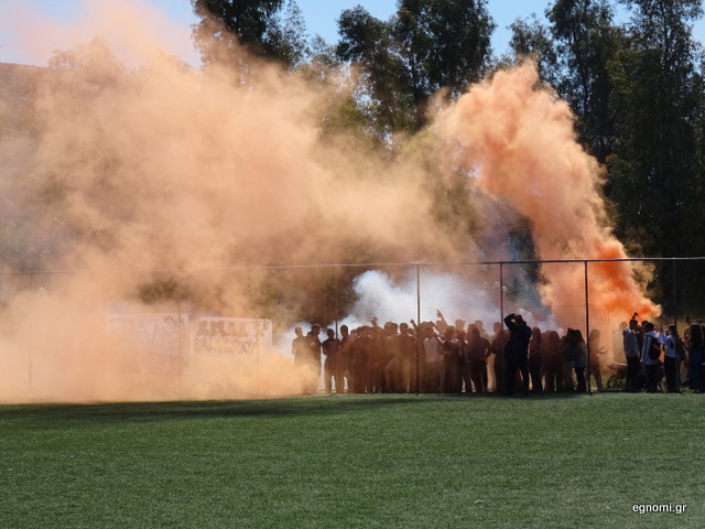 Φωτιά πήρε το Πάρκο του Λαού το μεσημέρι της Πέμπτης (14/4) με το άναμμα δεκάδων καπνογόνων από τους μαθητές στον τελικό των Λυκείων Εύβοιας στο ποδόσφαιρο (αγόρια).