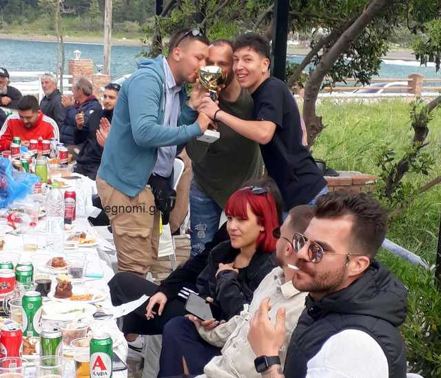 Σε ταβέρνα δίπλα στη γραφική παραλία του Πηλίου και με τη συνοδεία μουσικών οργάνων έγινε η απονομή της κούπας στον πρωταθλητή του βόρειου ομίλου της Γ' κατηγορίας Ερμή Πηλίου την Πρωτομαγιά το μεσημέρι.