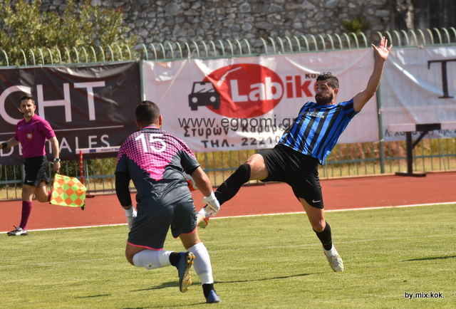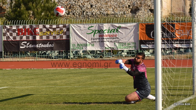 Στο 45' ο Καραχάλιος για τη Χαλκίδα εκτέλεσε φάουλ, ο Γκιόκας προσπάθησε να μπει στην πορεία της μπάλας, αλλά δεν τα κατάφερε.