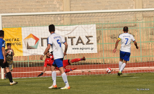Οσο περνούσε η ώρα, αυξάνονταν και οι διακοπές στο παιχνίδι κυρίως από πλευράς Κυπάρισσου, που έγινε ξανά απειλητικός λίγο πριν το τέλος του ημιχρόνου σε κομπίνα από κόρνερ. Ο Καράι σούταρε, αλλά η μπάλα κόντραρε σε σώματα και απομακρύνθηκε.