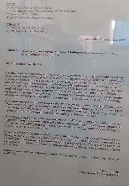 Η πλούσια Βιβλιοθήκη του Νικολάου Κουρμπέτη έγινε δωρεά στο 2ο Λύκειο Χαλκίδας