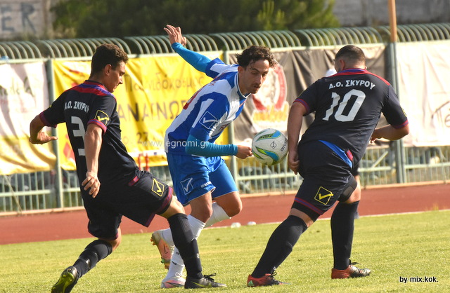 Το Δημοτικό στάδιο Χαλκίδας φιλοξένησε τον τελευταίο αγώνα μπαράζ ανόδου από τη Β' ΕΠΣΕ στην Α', με μονομάχους το Σταυρό και τη Σκύρο.