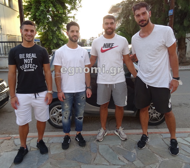 O Δημήτρης Στασινόπουλος (αριστερά), ο Βαγγέλης Ντελέκος και ο Κώστας Τσούπρος (δεξιά) θα συνεχίσουν ν' αγωνίζονται στην ομάδα της Αρτάκης. Ερωτηματικό παραμένει ο γκολκίπερ Δημήτρης Ντούμανης (δεύτερος από δεξιά).
