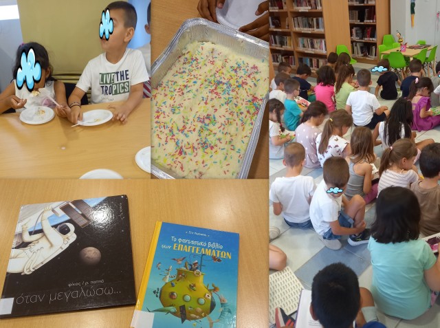 «Αφού παρατηρήσαμε τον τρόπο οργάνωσης της βιβλιοθήκης και ξεφυλλίσαμε αρκετά παραμύθια, αναφερθήκαμε στα επαγγέλματα που επιθυμούν τα παιδιά να ακολουθήσουν μελλοντικά.
