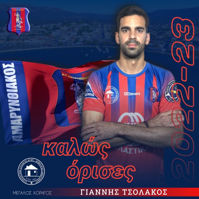 Προηγήθηκαν οι Φώτης Βεσέλι και Νίκος Σταματάκος, αλλά ο Αμαρυνθιακός ψώνισε στις μεταγραφές και από την αγορά του ΑΟ Χαλκίς, αποκτώντας τον έμπειρο αμυντικό μέσο Γιάννη Τσολάκο, ο οποίος φέτος στέφθηκε πρωταθλητής με τους κυανόμαυρους.