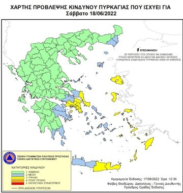Σύμφωνα με τον Χάρτης Πρόβλεψης Κινδύνου Πυρκαγιάς, που εκδίδει η Γενική Γραμματεία Πολιτικής Προστασίας, για το Σάββατο 18 Ιουνίου υπάρχει υψηλός κίνδυνος πυρκαγιάς σε διάφορες περιοχές της χώρας, μεταξύ των οποίων και η Νότιος Εύβοια.