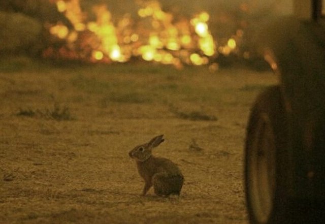 Το γύρο του διαδικτύου κάνει η φωτογραφία με έναν λαγό να στέκεται μπροστά στις φλόγες!