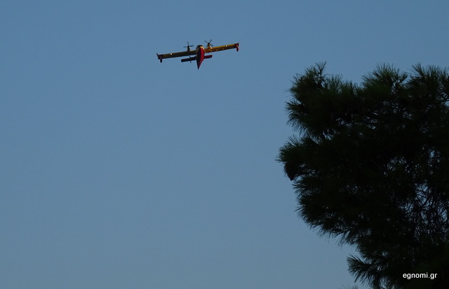 Καναντέρ και ελικόπτερα πετούσαν μέχρι αργά το απόγευμα πάνω από το μέτωπο.